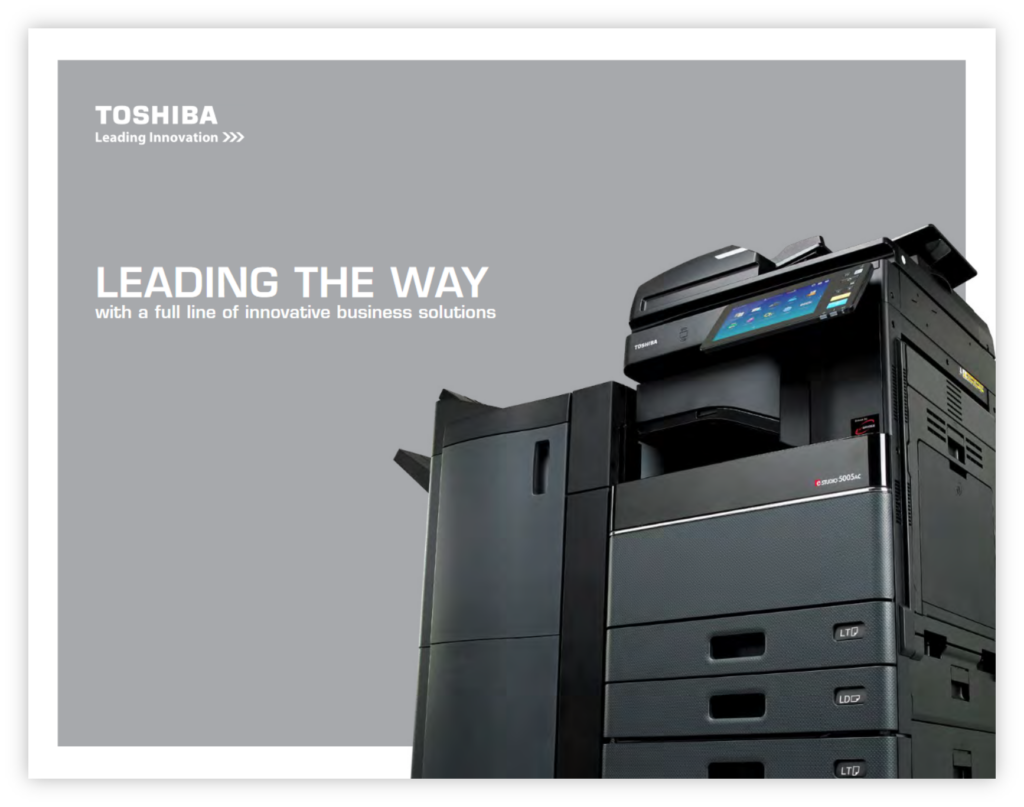 “Explore the power of Toshiba printers with our comprehensive brochure. Packed with detailed information on our full range of innovative printing solutions, this brochure highlights how Toshiba’s cutting-edge technology can transform your office environment. From multifunctional devices to eco-friendly features that support sustainability, our printers are designed to enhance productivity and reduce costs. Download the brochure today to find the perfect printing solutions tailored to your business needs and see how Toshiba and Echo Office Solutions can help drive your success.”